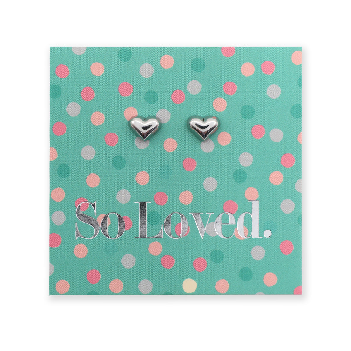 Gorgeous heart stainless steel tiny stud earrings with cute shapes and designs presented on a beautiful foil feature card.