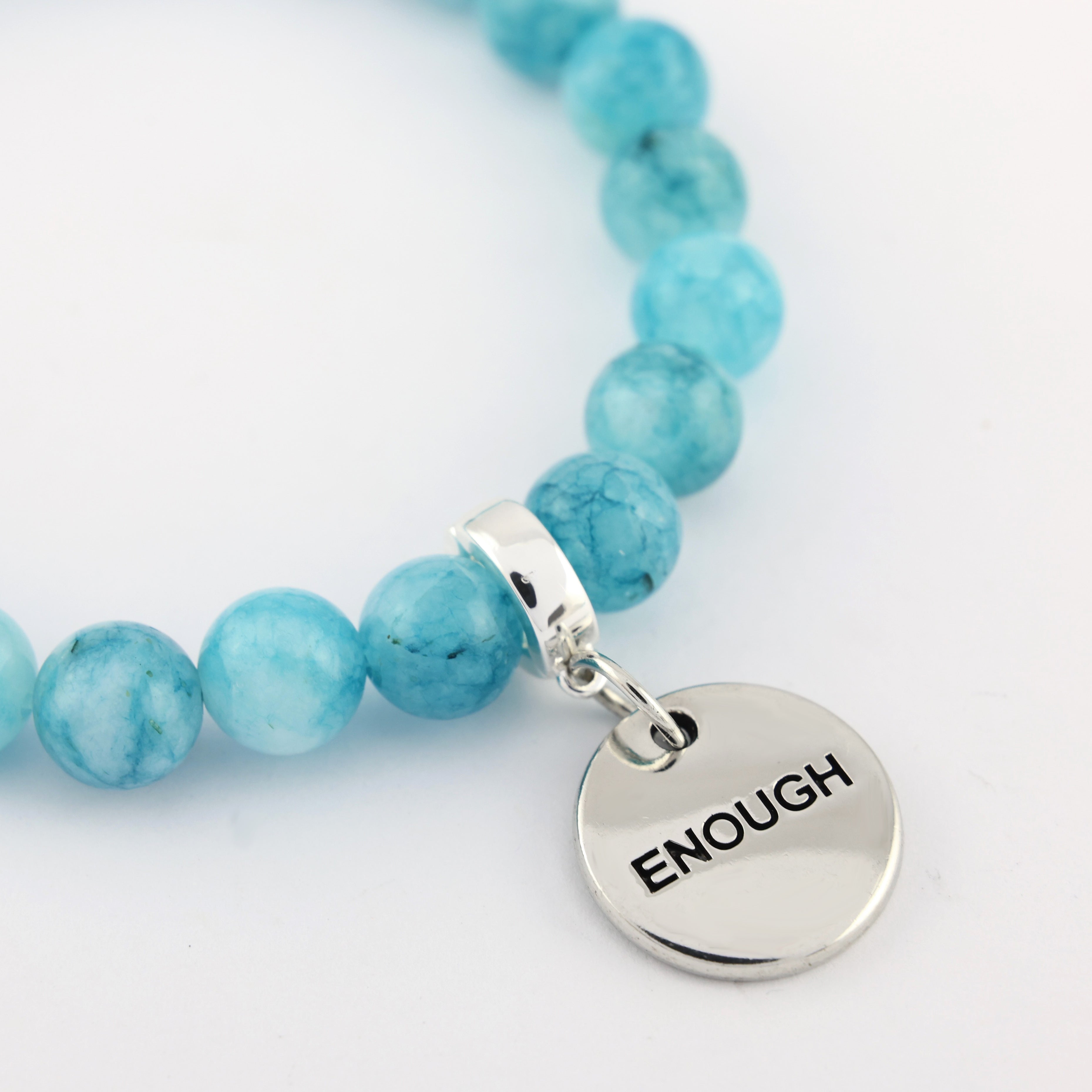 • Stone Bracelet - SEA BREEZE CHALCEDONY 8mm Beads - With Silver Charms