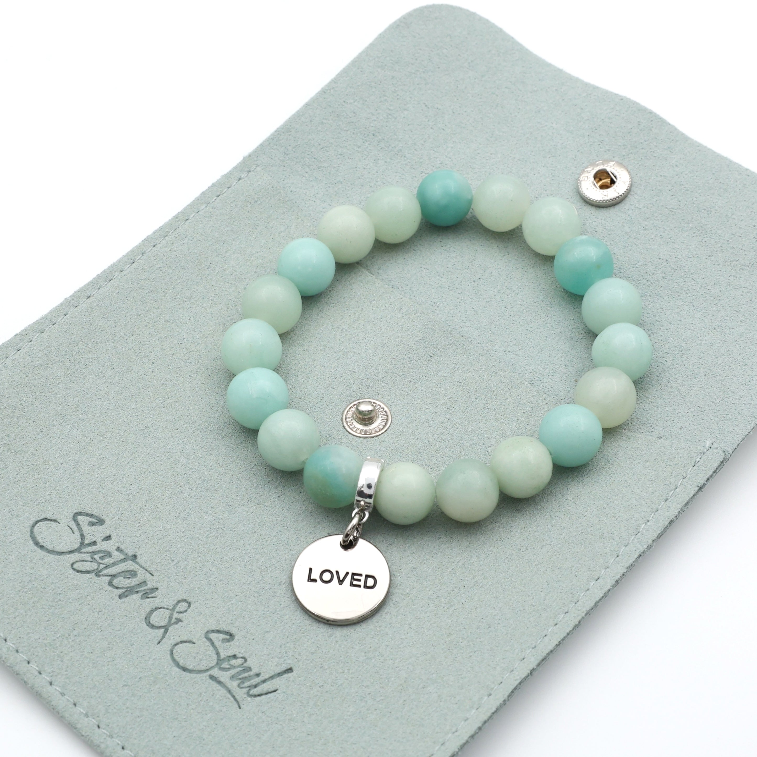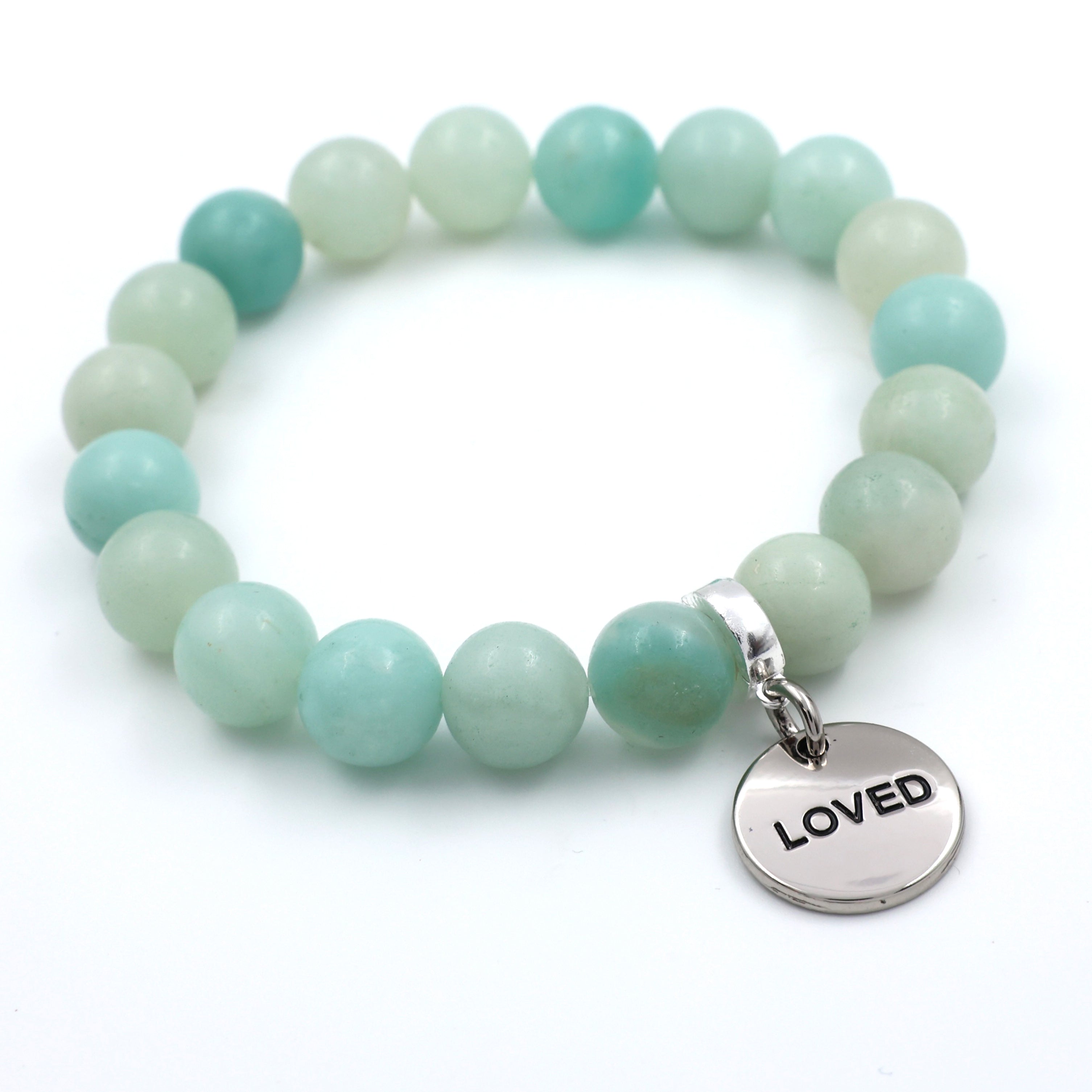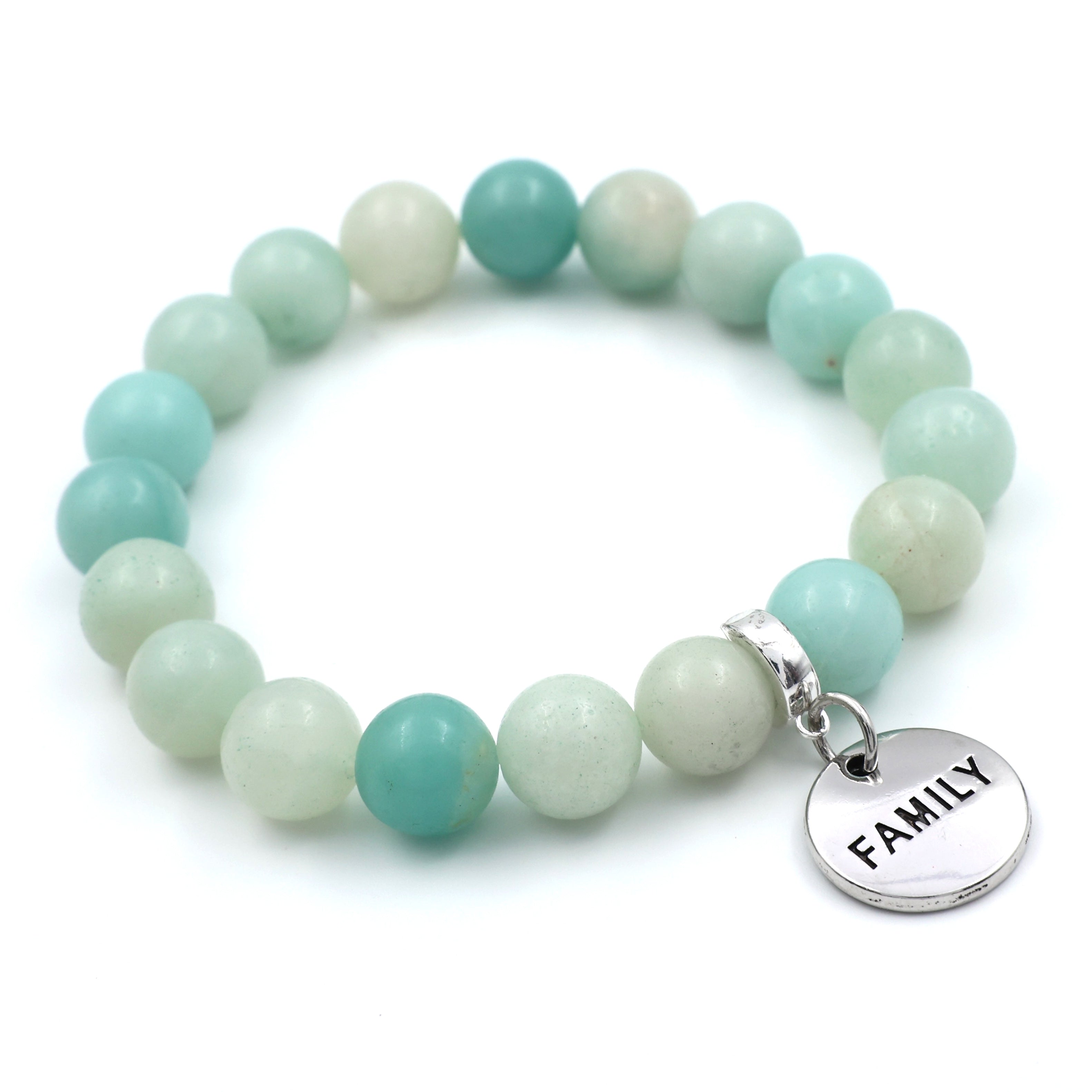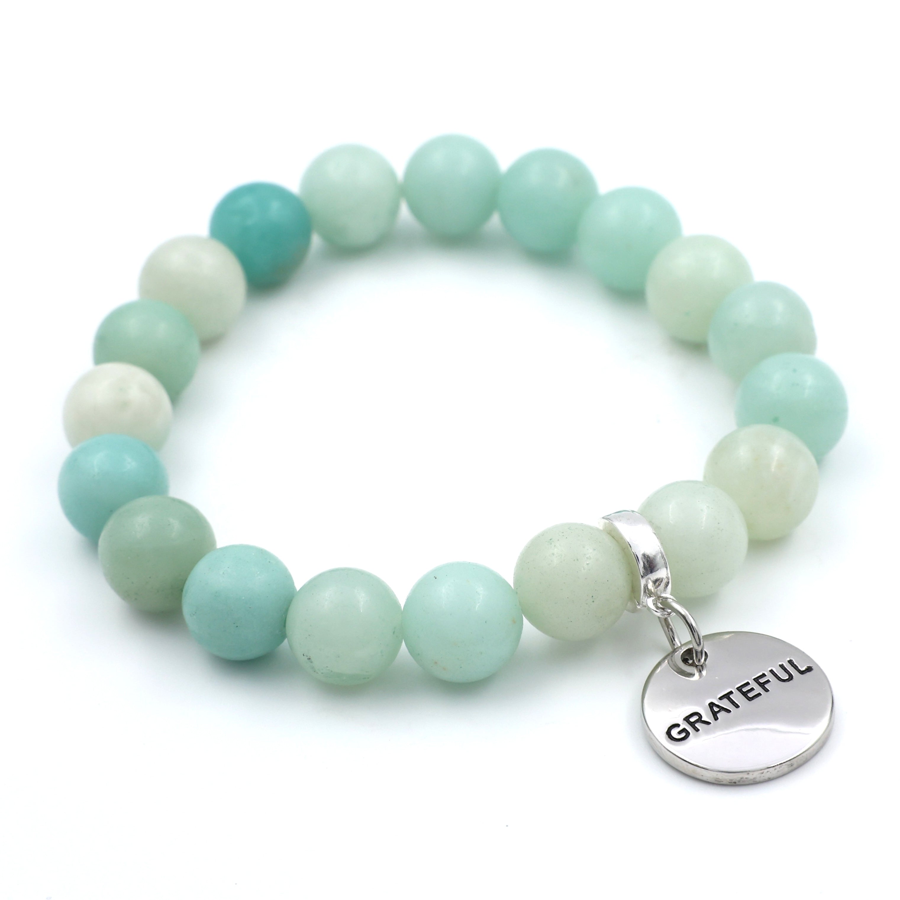 • Stone Bracelet - Amazonite 10mm Beads - With Silver Charms
