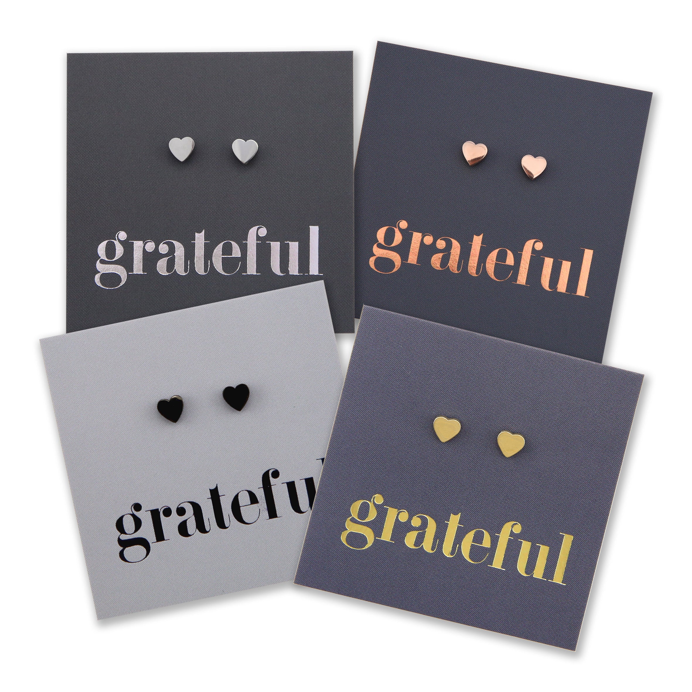 Gorgeous tiny stainless steel stud earrings with cute shapes and designs presented on a beautiful foil feature card.
