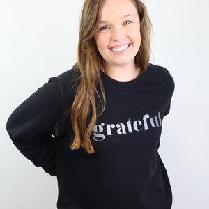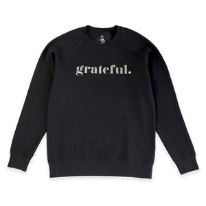 • Grateful Crew Neck Jumper - Black - Charcoal Shimmer Print
