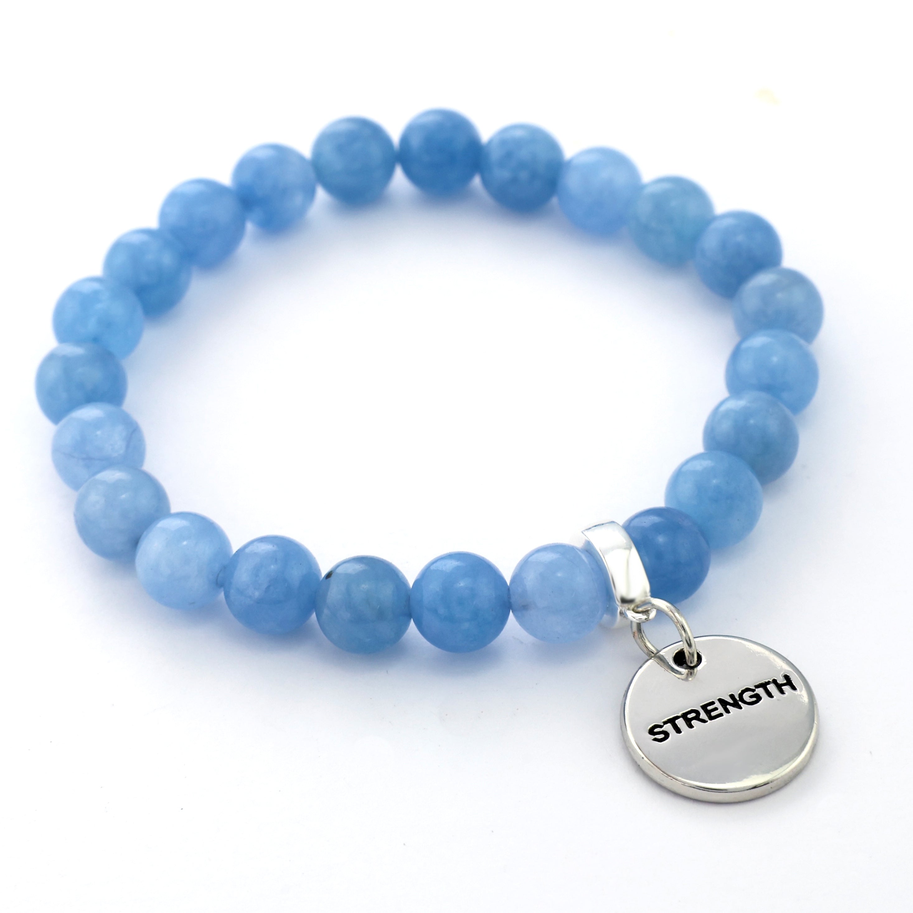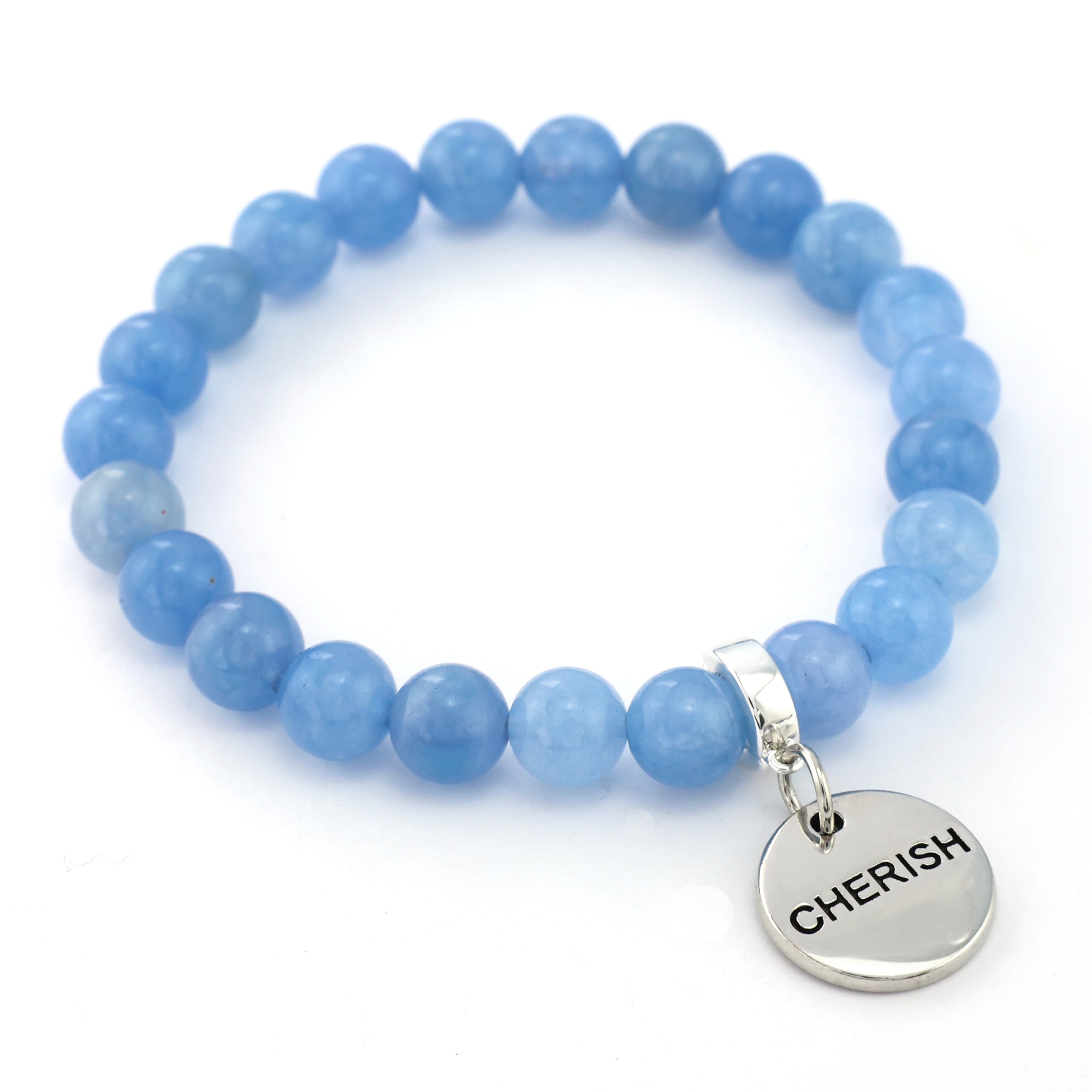 • Stone Bracelet - SKY BLUE 8mm Beads - With Silver Charms