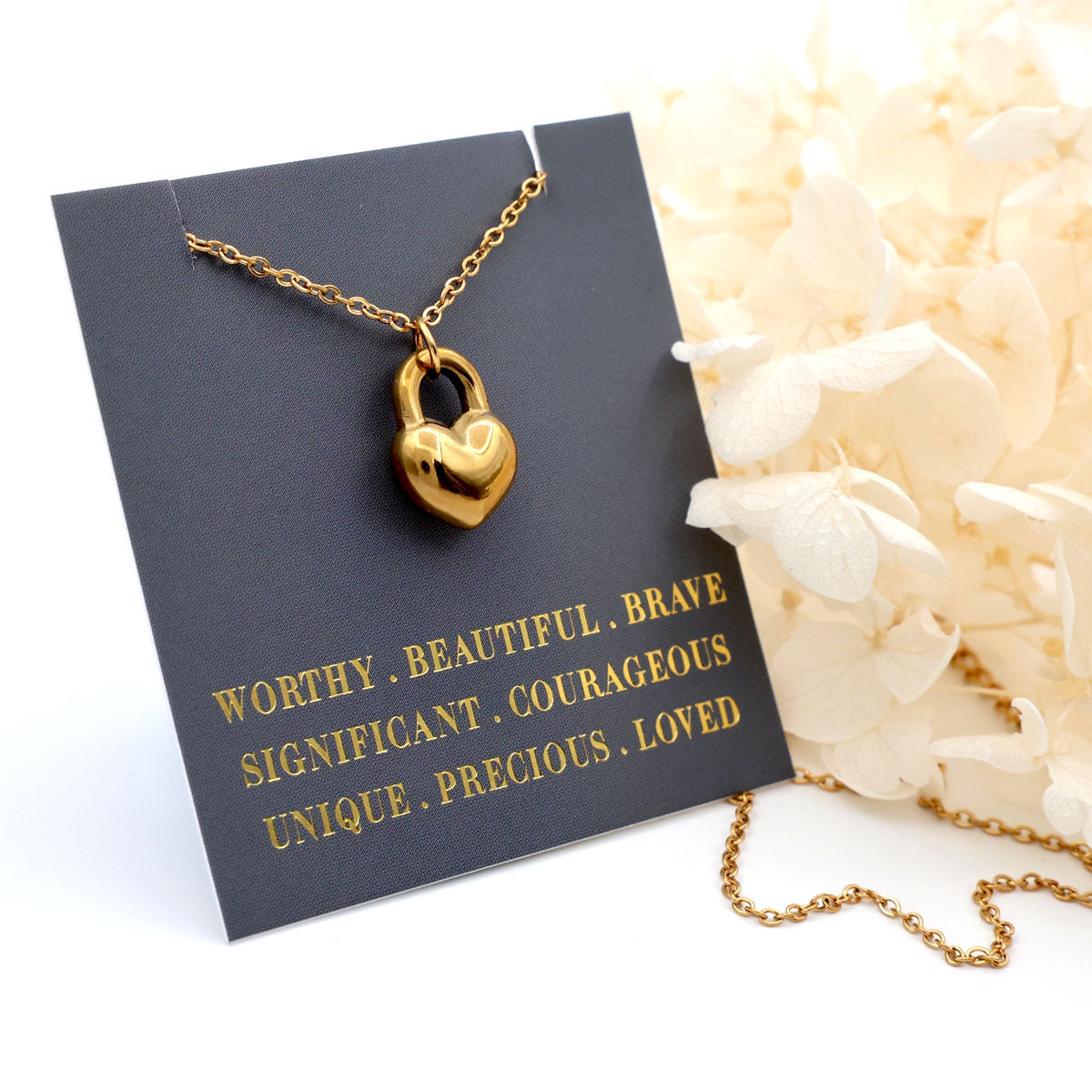 Beautiful necklace featuring a gorgeous stainless steel Heart Lock charm. This necklace makes a beautiful gift or the perfect piece to cheer yourself up, you are so worth it!