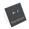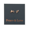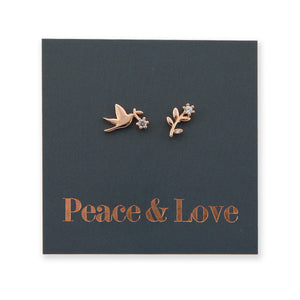 Beautiful premium rose gold sterling silver dove and branch studs with cubic zirconia detail, that would make the ideal gift or add to your collection. These earrings are hypoallergenic, and would suit kids, adults and sensitive ears. These studs come presented on 'Love + Peace' foil card. Enjoy!