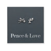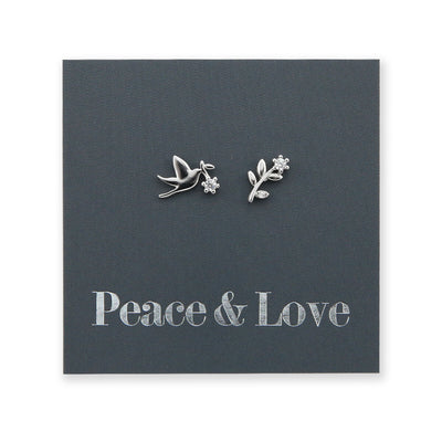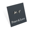 Beautiful premium sterling silver dove and branch studs with cubic zirconia detail, that would make the ideal gift or add to your collection. These earrings are hypoallergenic, and would suit kids, adults and sensitive ears. These studs come presented on 'Love + Peace' foil card. Enjoy!