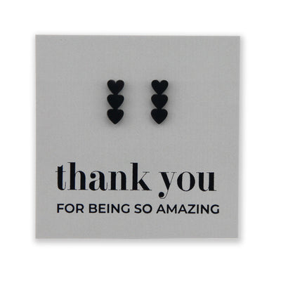 Gorgeous tiny stainless steel stud earrings with cute shapes and designs presented on a beautiful foil feature card. These are available in 4 metallic colours gold, rose gold, silver & black.