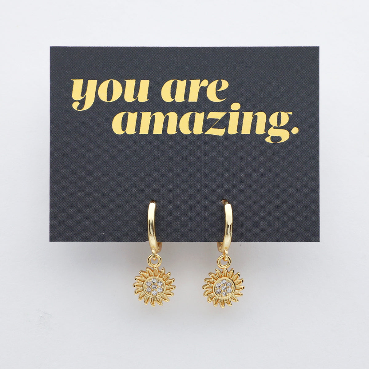 I love my rose gold hoops with sunflower charm, these earrings go with everything. And my friends are noticing my new earrings too!