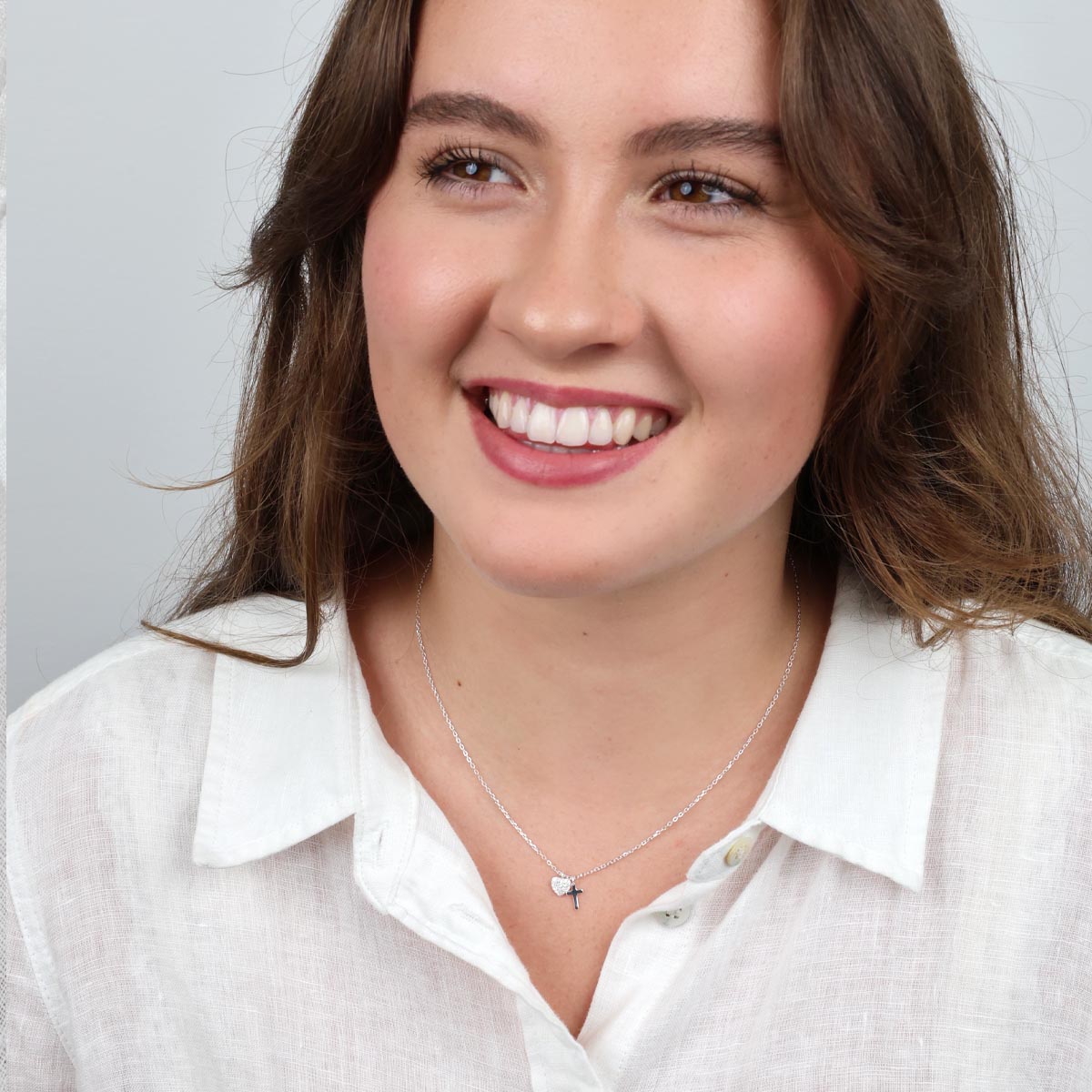 Premium Fine Necklace - 925 Sterling Silver with Cross + CZ Heart - Grateful (11332)