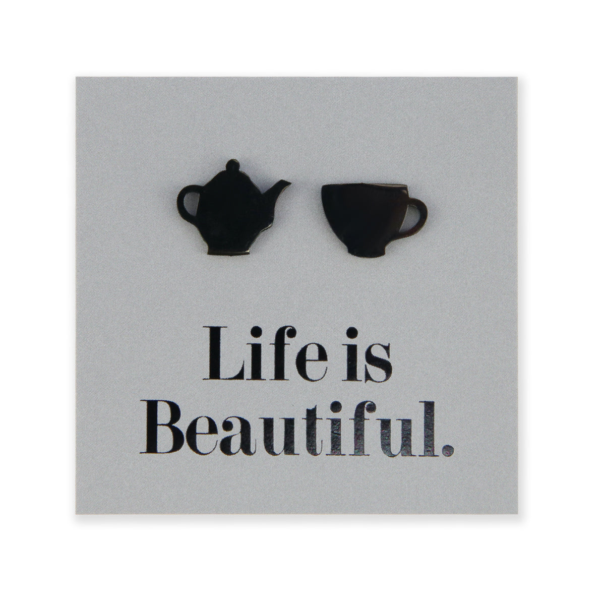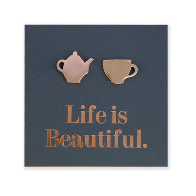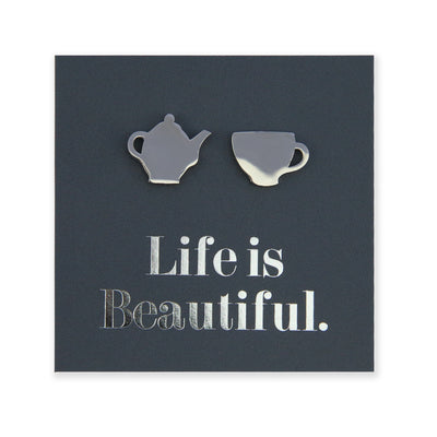 • Stainless Steel Earring Studs - Life Is Beautiful - TEA TIME
