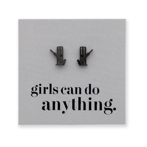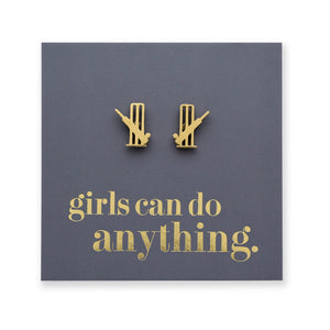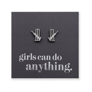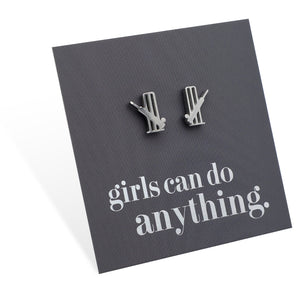 Stainless Steel Earring Studs - Girls Can Do Anything - CRICKET