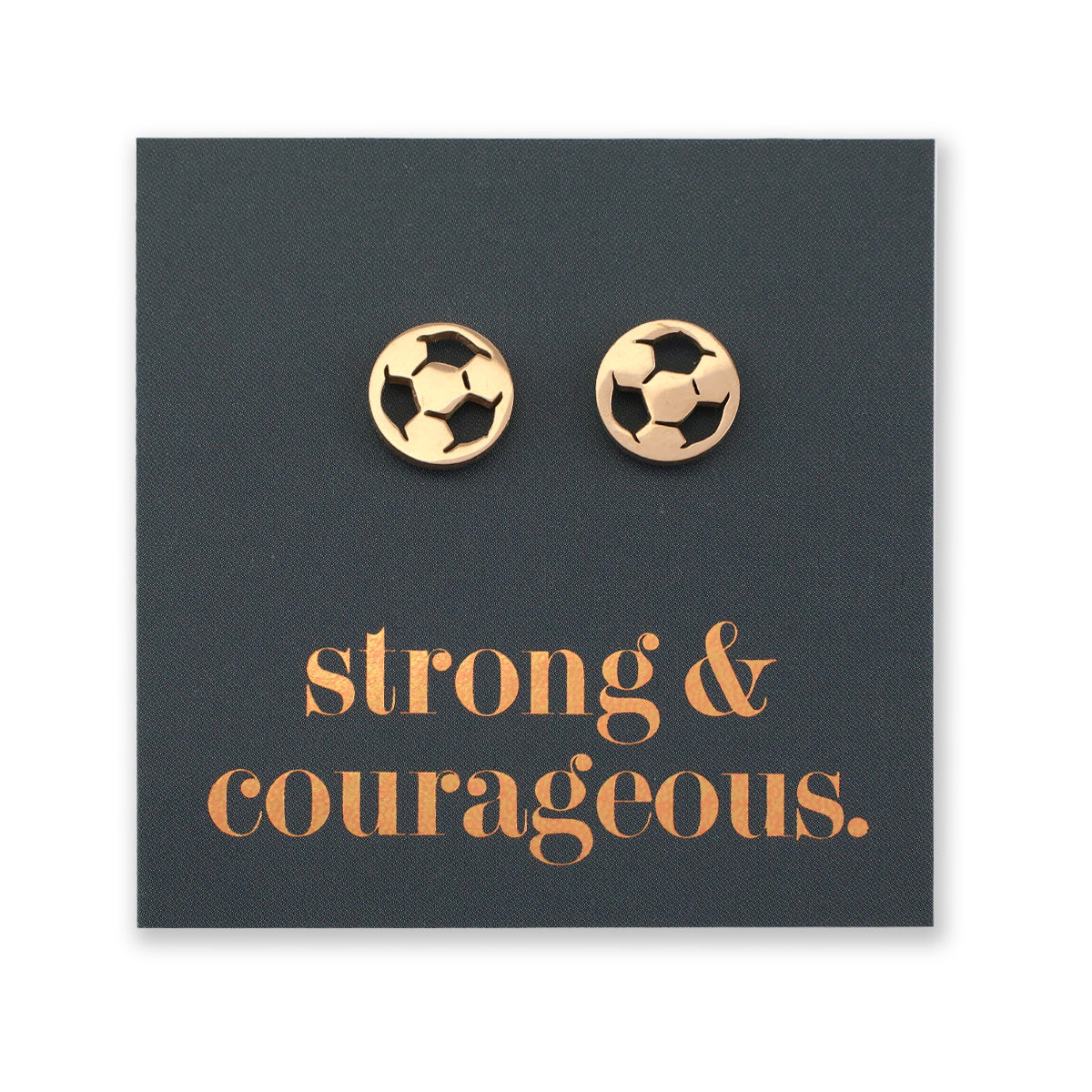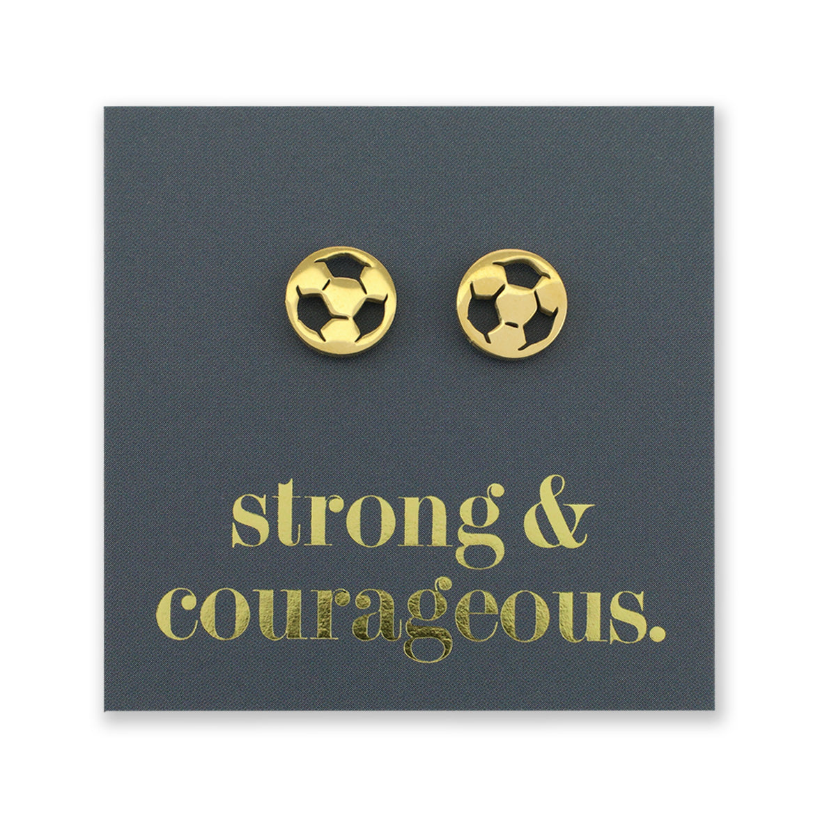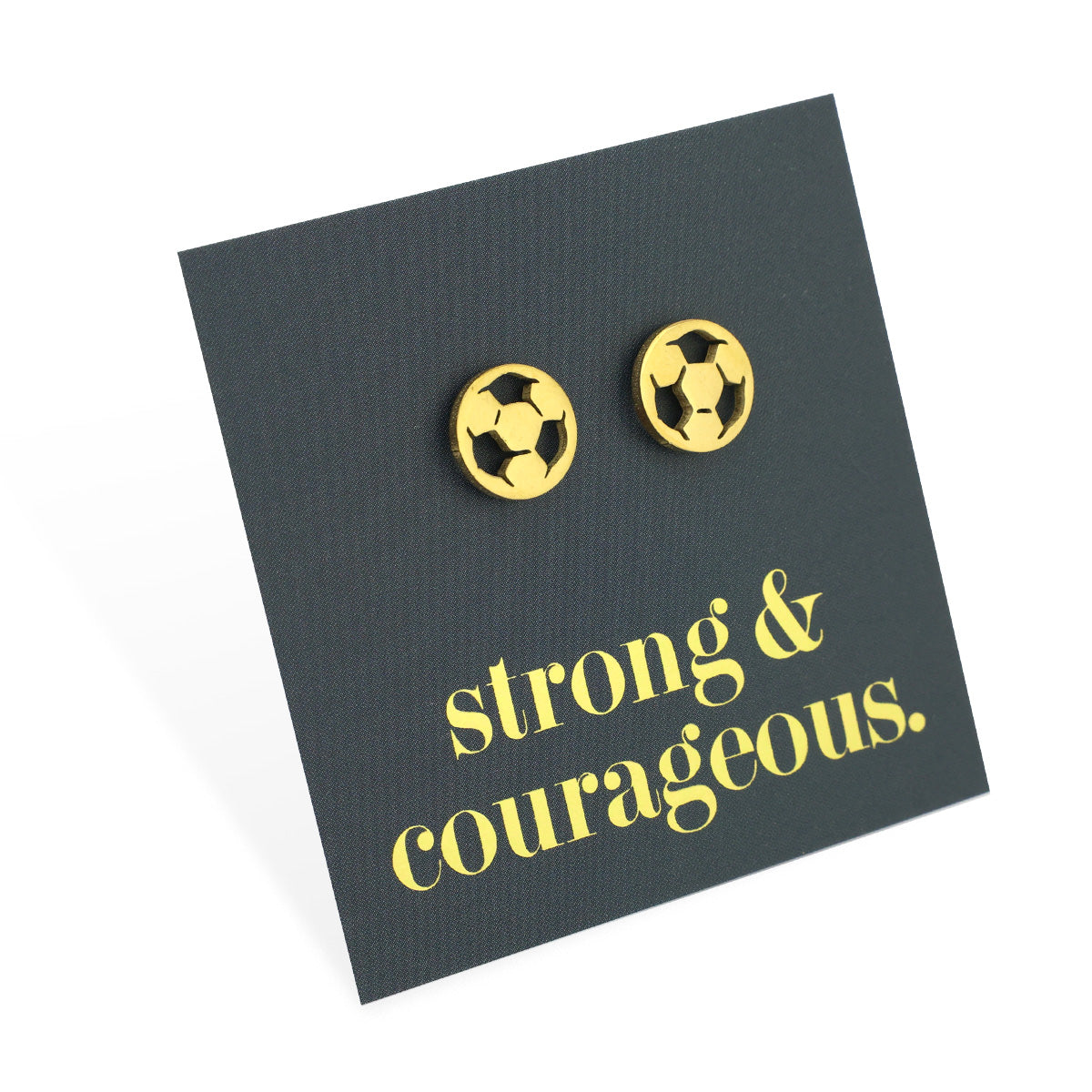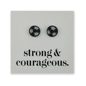 • Stainless Steel Earring Studs - Strong & Courageous - SOCCER BALLS