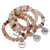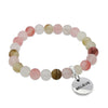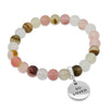Stone Bracelet - Frosted Watermelon & Tigerskin 8mm Beads - With Silver Word Charms