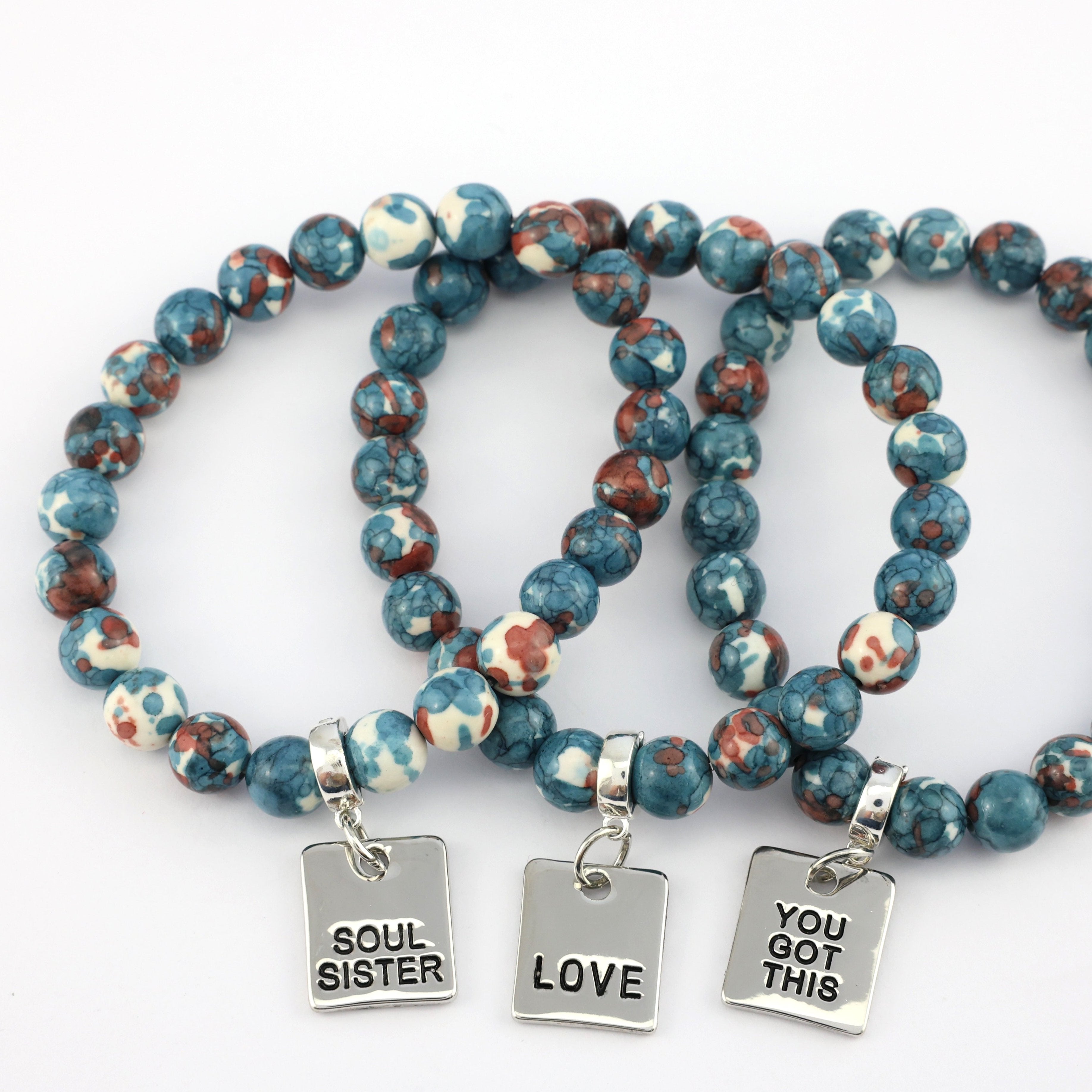 Our stone bracelets are created from natural stone, quartz and crystal beads, some of our bracelet styles are colour dyed to achieve beautiful fashion colours. Imperfections and variations are characteristic but add to the uniqueness of the piece. Pieces are not individually photographed. There may be some differences in characteristics from the images portrayed. All care is taken to only send out the highest quality products.
