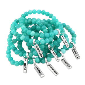 These bracelets come with word charms that have been delicately crafted with love. The word charms are carefully chosen to encourage and lift your spirit. These bracelets make fantastic gifts and are a gorgeous addition to your jewellery collection. They look fantastic worn on their own or wear them stacked with other bracelets from our stone range to create your own unique look.
