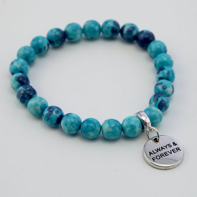 Our stone bracelets are created from natural stone, quartz and crystal beads. Imperfections and variations are characteristic, but add to the uniqueness of the piece. Pieces are not individually photographed, there may be some differences in characteristics from the images. See of our stones are dyed to achieve bright fashion colours, but are made form natural stone. All care is taken to only sell the highest quality products, all stone jewellery is carefully checked.
