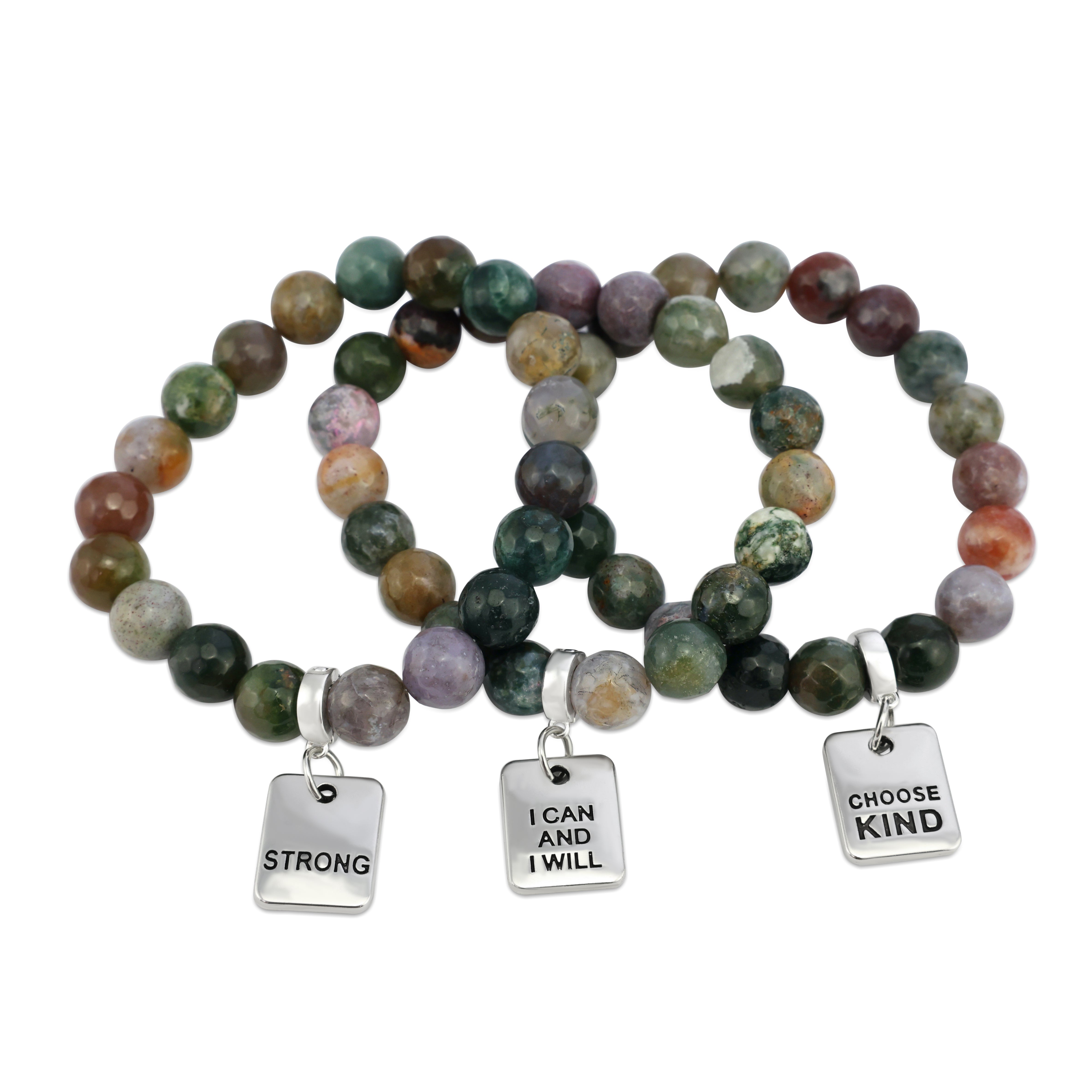 Our stone bracelets are created from natural stone, quartz and crystal beads. Imperfections and variations are characteristic but add to the uniqueness of the piece. Some of our stone jewellery is dyed to achieve fashion colours but is a natural stone product as stated. Pieces are not individually photographed, there may be some differences in characteristics from the images. All care is taken to only sell the highest quality products. A small portion of our stone bead bracelets are created from synthetic materials or mix to achieve beautiful textures and colours. This detail will be stated in the product specifications.